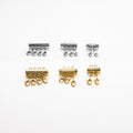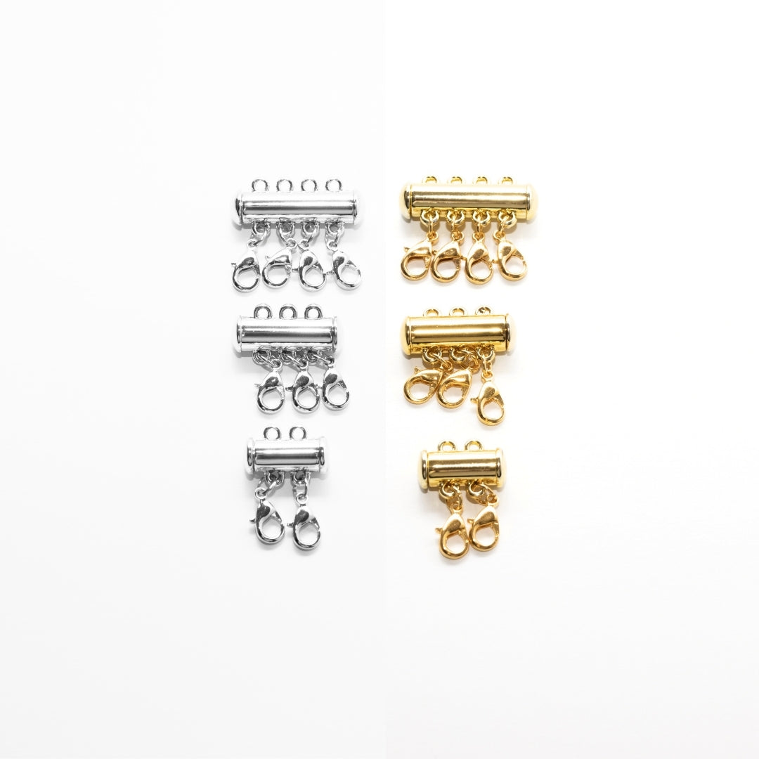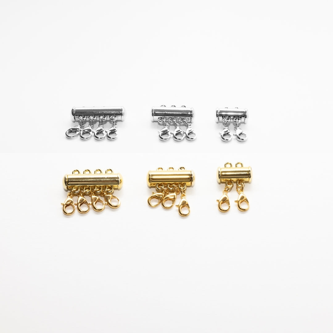 Eliminate messy, tangled jewelry with these Magnetic Layered Necklace Clasps from DY Judaica. The easy slide-lock design lets you add or remove multiple necklaces or bracelets at once—just pull apart to open and slide to close. These connectors are lightweight, tarnish-resistant, and arrive pre-assembled with loops and lobster clasps. Perfect for layering necklaces, bracelets, and more, these clasps bring flexibility, convenience, and a polished look to your jewelry collection.