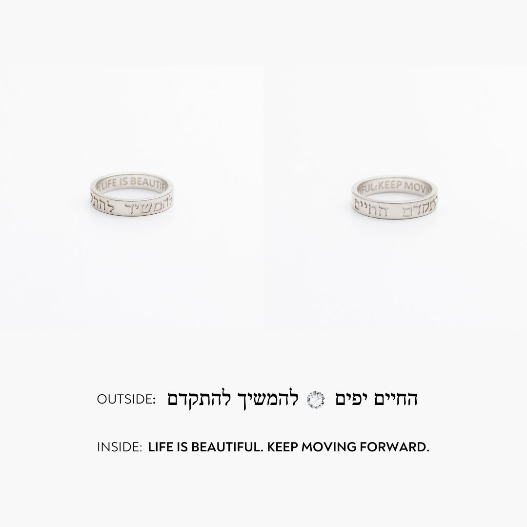 This elegant piece is engraved with two powerful messages to inspire resilience and hope through life's journey. Designed to be a reminder of inner strength and the beauty of every moment, this ring is perfect for those who believe in moving forward no matter the challenge.
